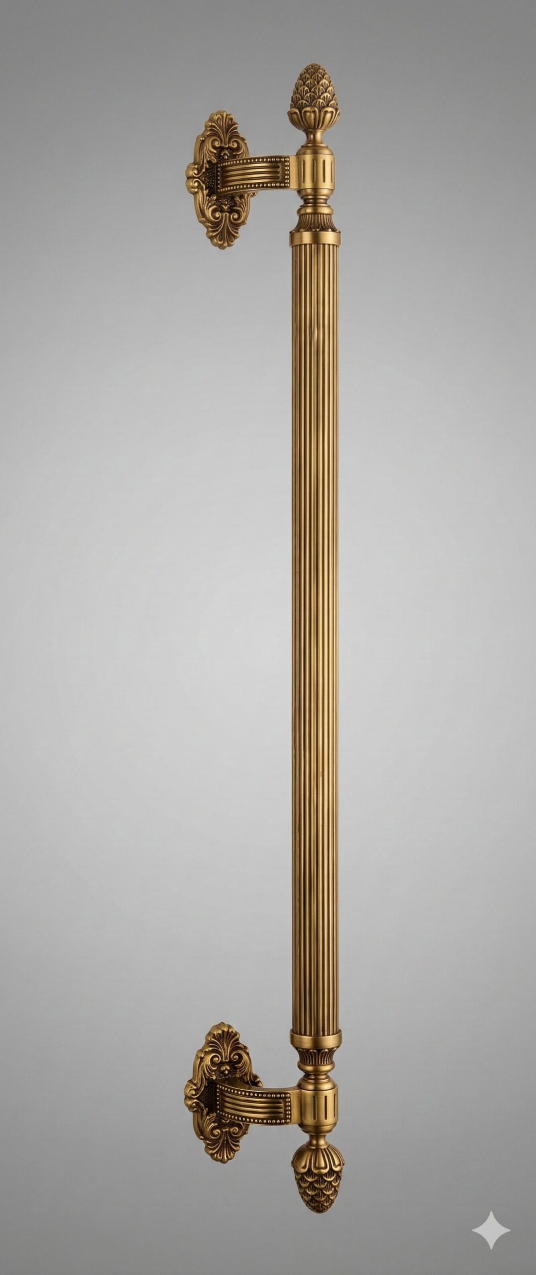 This elegant door pull handle is crafted from high-quality solid brass and manufactured in China, combining durability with classic decorative design. The handle features a beautifully fluted cylindrical grip with ornate urn-style finials at the top and bottom, giving it a sophisticated and timeless appearance suitable for luxury doors.